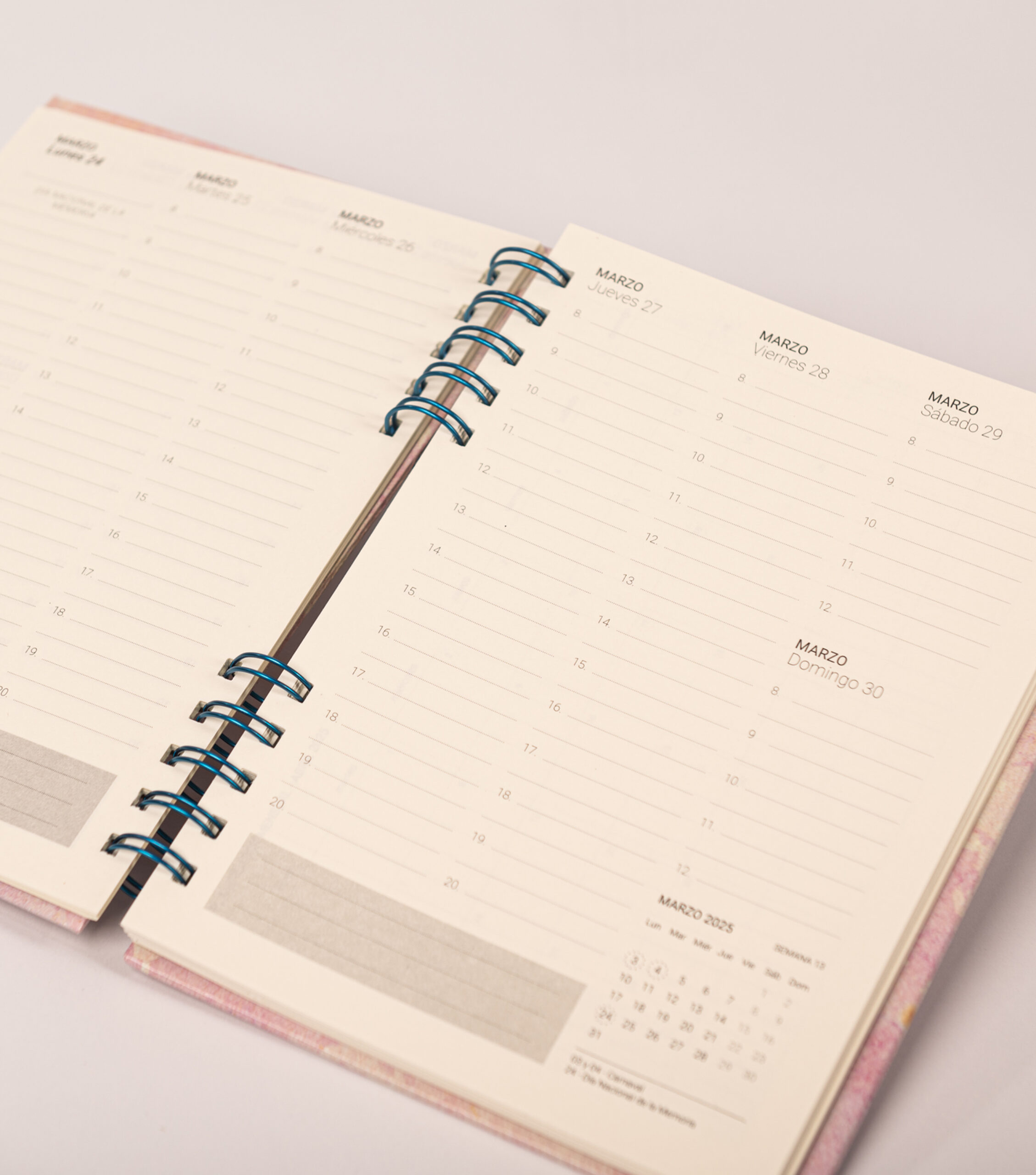 El diseño de esta agenda pertenece a la línea “Texturizado color rosa”.
