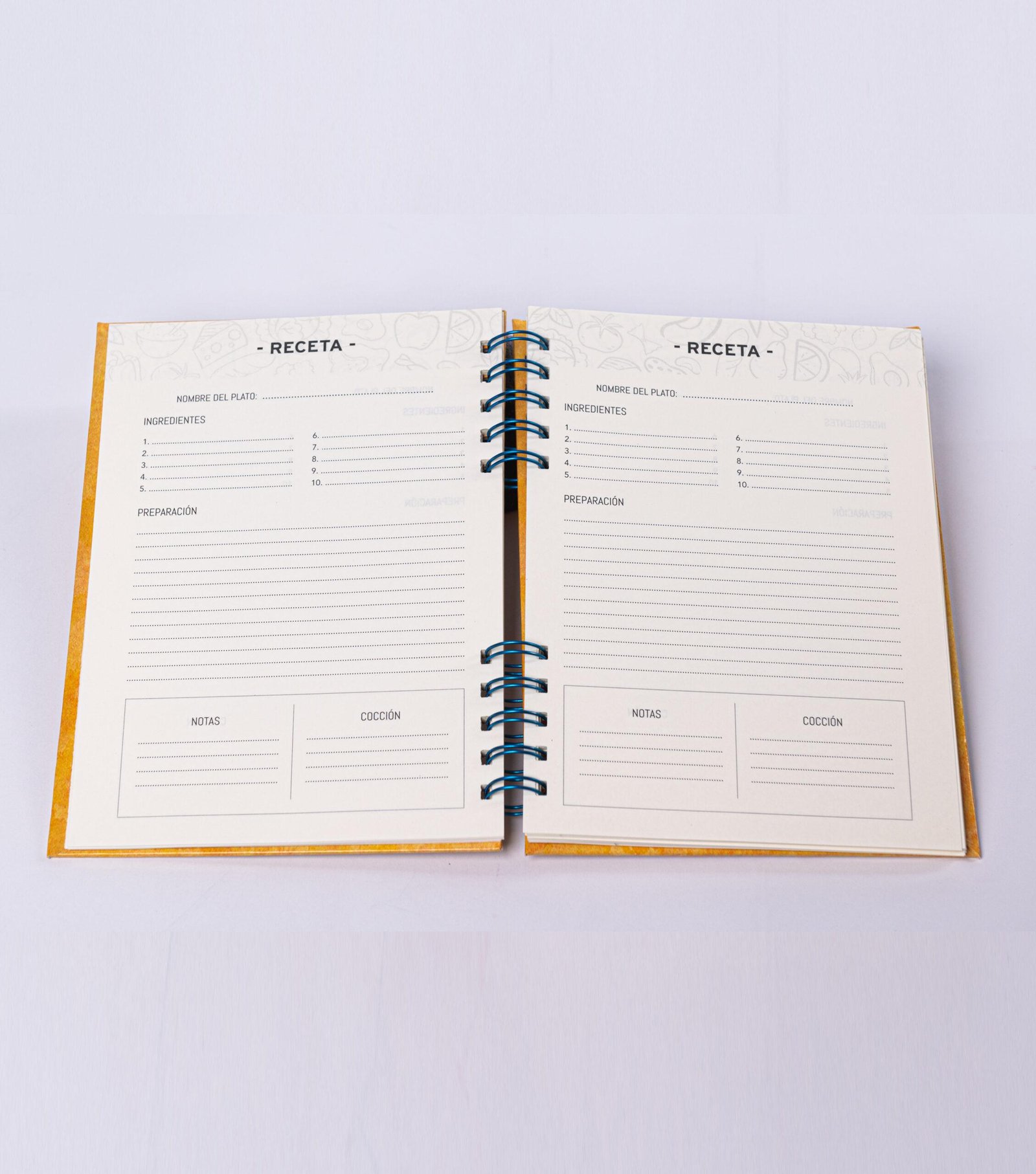 El diseño de este cuaderno es para anotar “Recetas”.