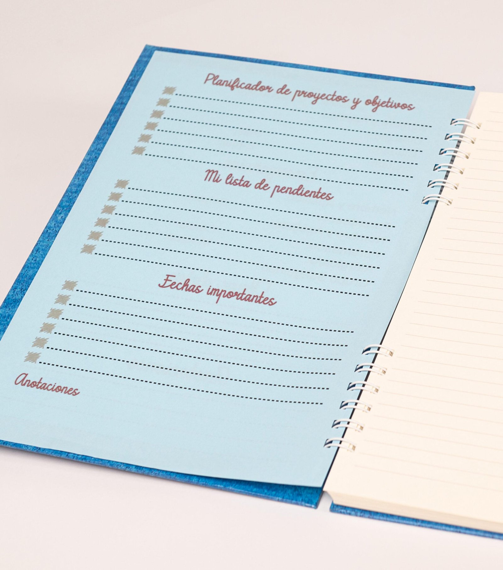 El diseño de este cuaderno pertenece a la línea “Texturizado color azul”.