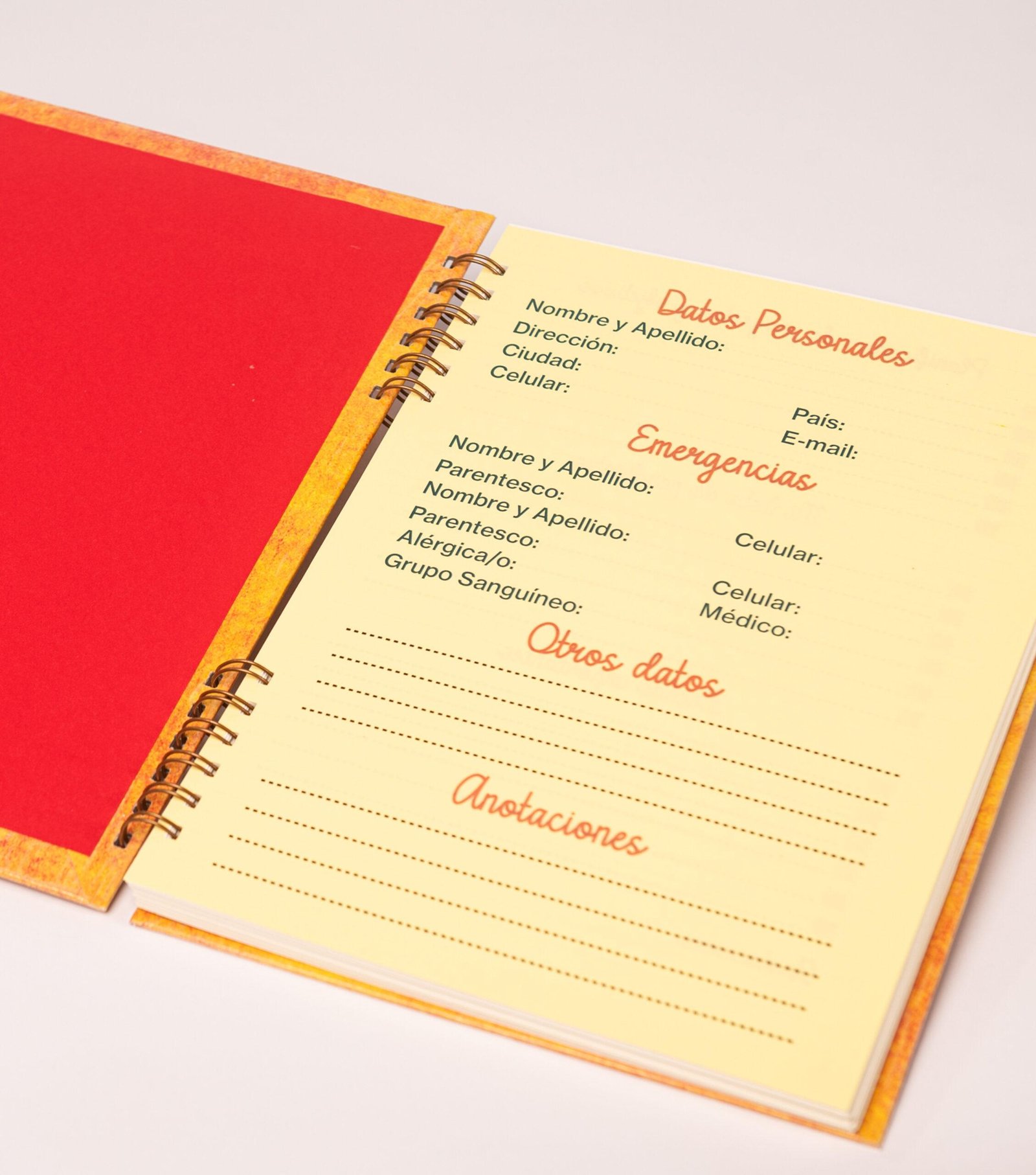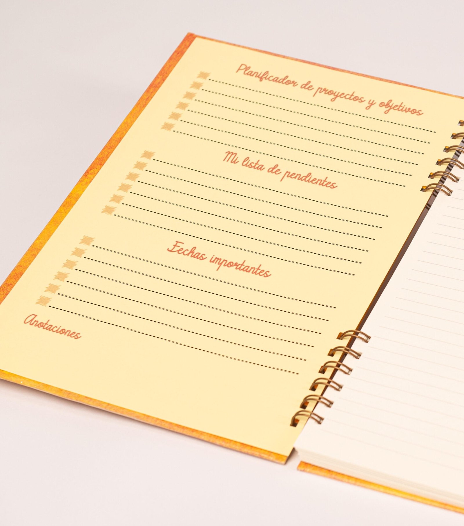El diseño de este cuaderno pertenece a la línea “Texturizado color naranja”, una combinación de los colores con diferentes tonalidades de amarillos y rojos.