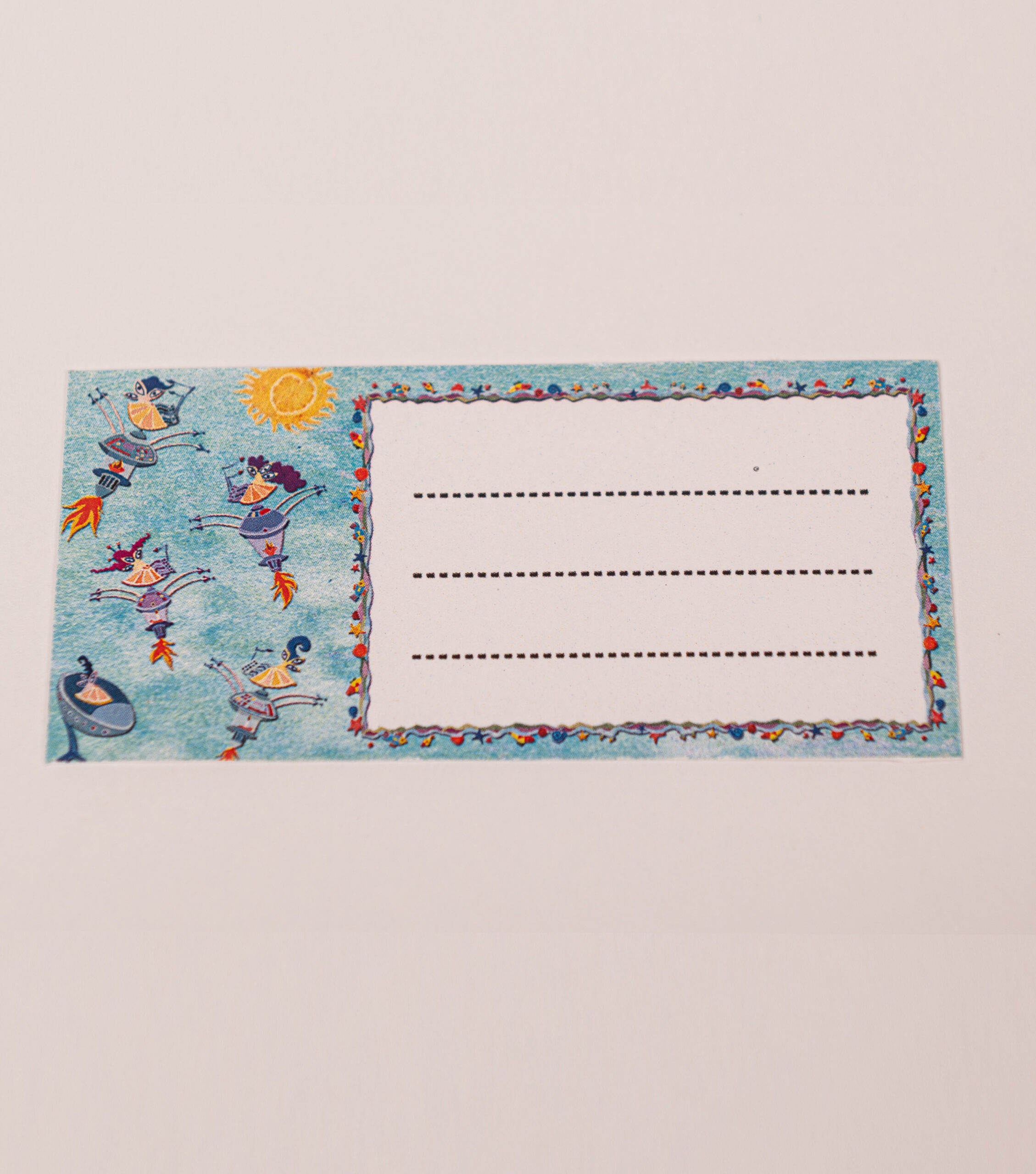 El diseño de esta etiqueta pertenece a la línea “Familia de extraterrestres”.